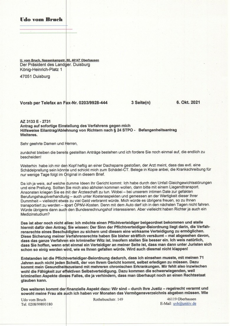 Vor Beginn der Berufungs-Hauptverhandlung habe ich verschiedene Anträge gestellt. Dieser arrogante Verein glaubt, sich aber auch alles leisten zu können - natürlich auch wieder die rechtswidrigen Sachen. Lest selbst: